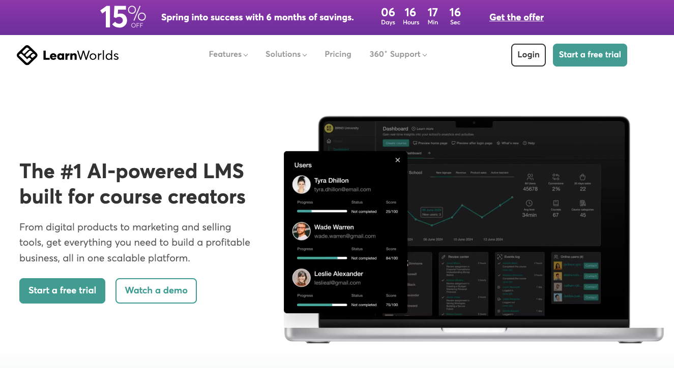 Explore LearnWorlds’s with a 30-day free trial. No payment required — upgrade when you're ready.