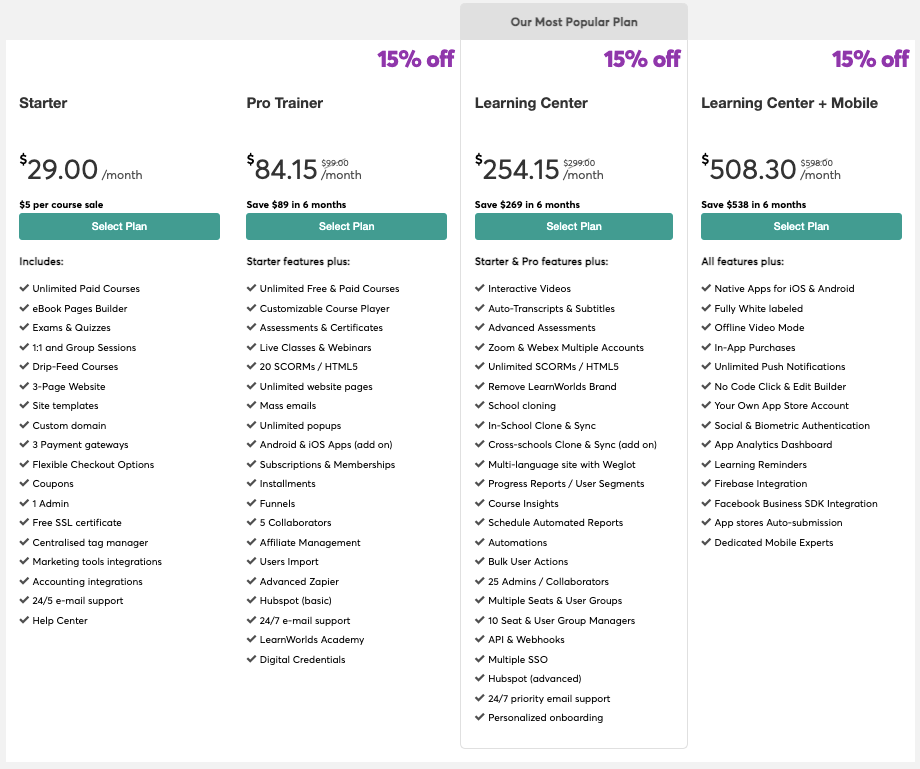 This exclusive discount applies to Pro Trainer & Learning Center & Learning Center + Mobile plan.